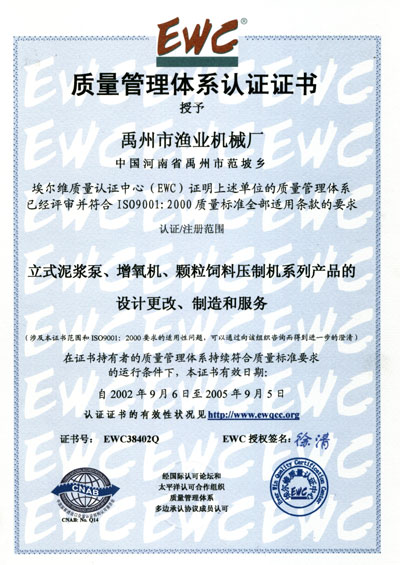 ----幾年來,我廠本著靠科技求發(fā)展,靠信息求市場,靠質(zhì)量求生存,靠管理求效益的治廠方略,大膽進行改革,建立起一套全新的運行機制。2002年9月已通過ISO9001:2000國際質(zhì)量管理體系認(rèn)證;在2000年12月榮獲河南省科學(xué)技術(shù)廳“科技企業(yè)證書“;2001年7月獲河南省科學(xué)技術(shù)廳“高新技術(shù)產(chǎn)品證書“;2001年12月獲河南省科學(xué)技術(shù)廳“高新技術(shù)企業(yè)認(rèn)定證書“;曾獲河南省鄉(xiāng)鎮(zhèn)企業(yè)名牌產(chǎn)品稱號。